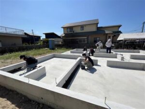 ▲基礎に施主様やOB様が実際に「アンダープロテクト」を塗る体感を実施
